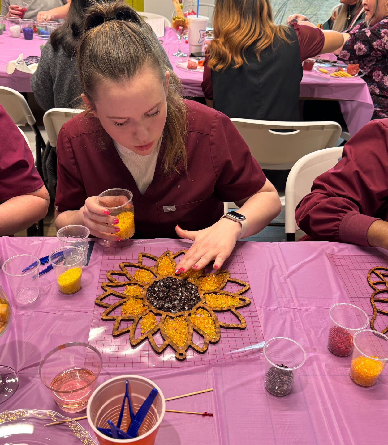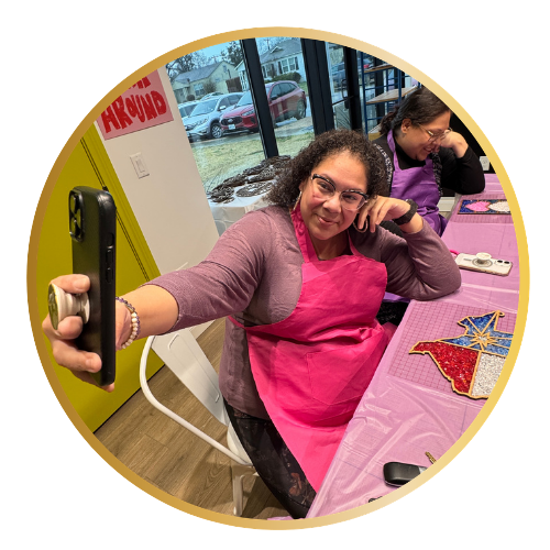 Crushed glass. Resin. Color choices that are completely theirs. No art experience needed — that's kind of the whole point.